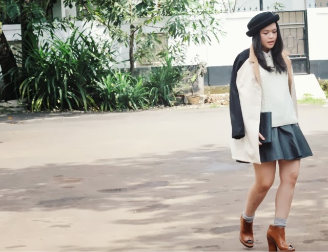 cloth inc tritone autumn blazer/ cloth inc cable knit sweater in offwhite / cloth inc faux leather skater skirt/ cottonink ipad case/ forever21 shirt dress worn as inner/ H&M porkpie hat/ uniqlo knitted socks/ ASOS boots